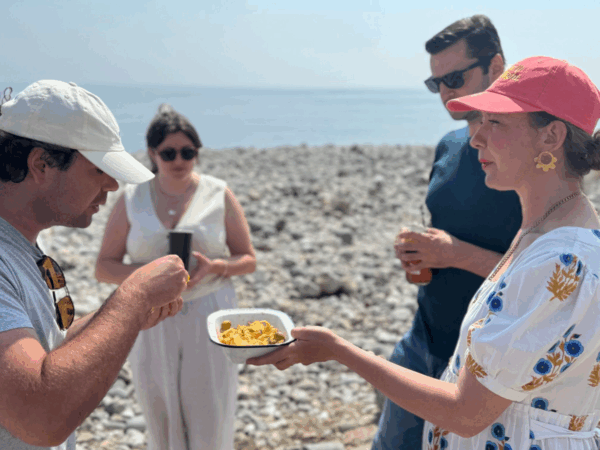 We returned to the beach empty handed, but only briefly, as Charlie and Angus from Sea Sisters greeted us with canapés made with seafood from their own conservas.